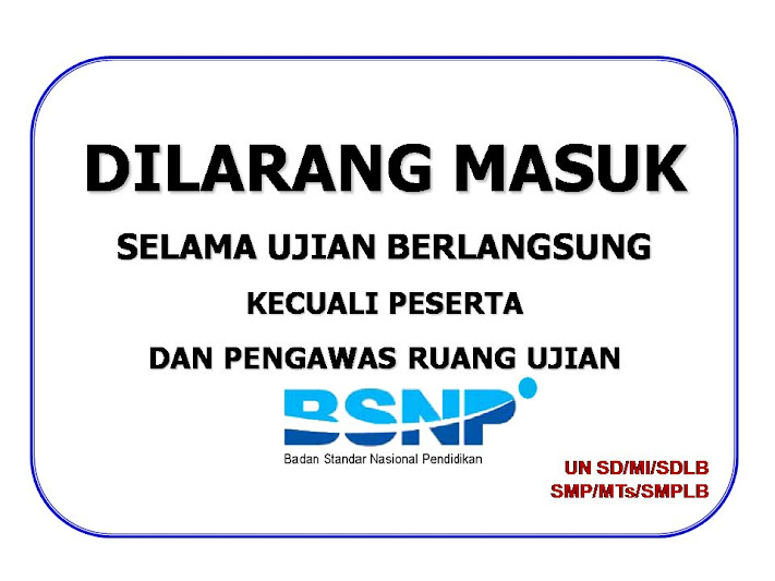 Jika kita baca POS UN SD/MI s.d. SMA/MA salah satu kriteria penataan ruang UN adalah ditempel kertas bertuliskan : "DILARANG MASUK SELAIN PESERTA UJIAN DAN PENGAWAS". Kalimat peringatan ini baik dalam POS UN SD/MI maupun SMP/MTs, SMA/MA, SMK susunannya sama. Kalimat ini sedikit menimbulkan pertanyaan di benak saya: